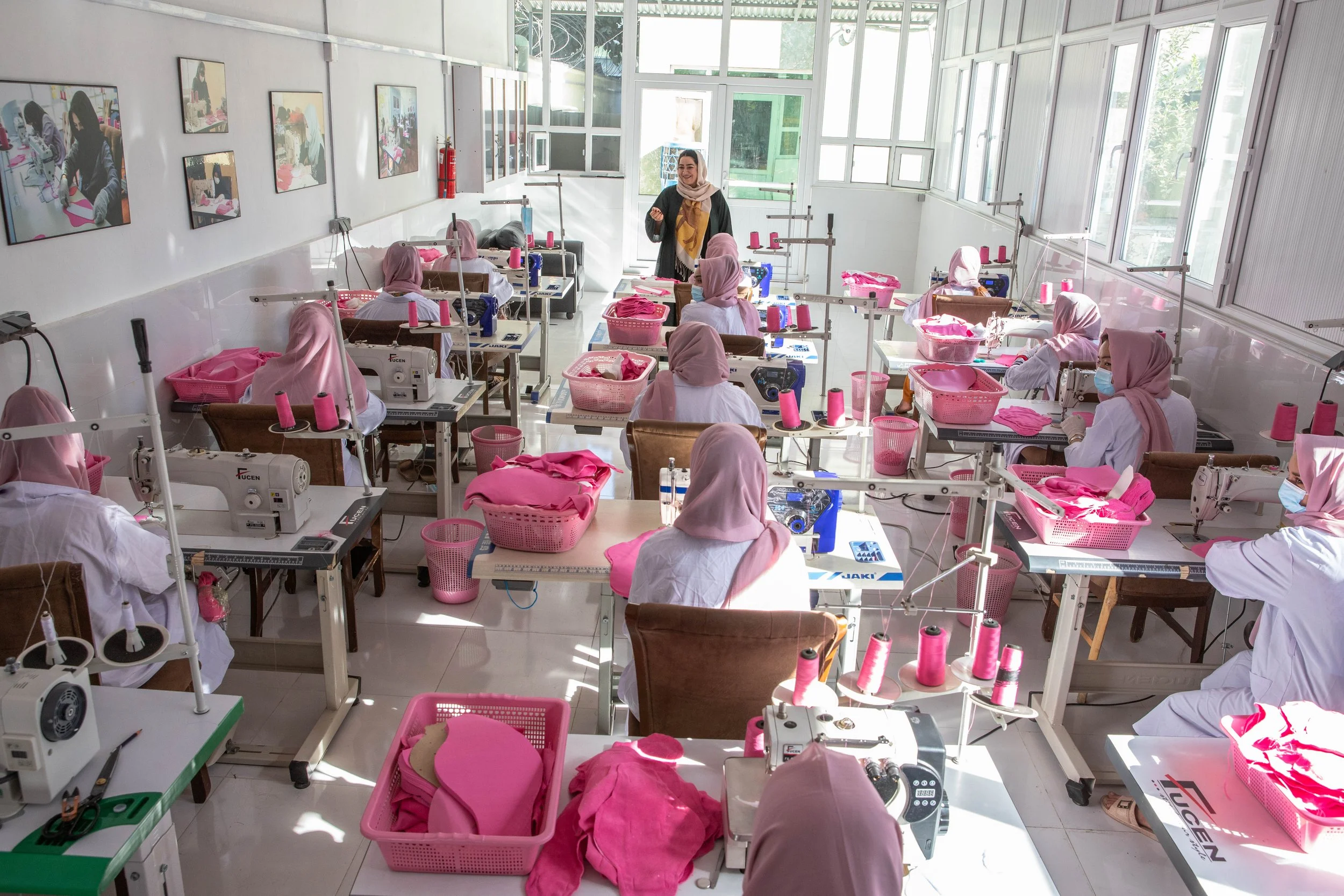 Over 200 Afghan women and girls now work at SPP’s Kandahar Safepad production center, gaining financial independence and improved social status (earning $190 per month).
